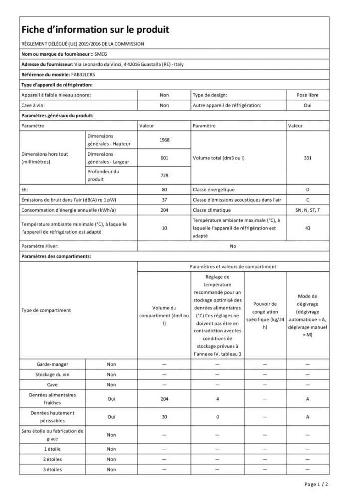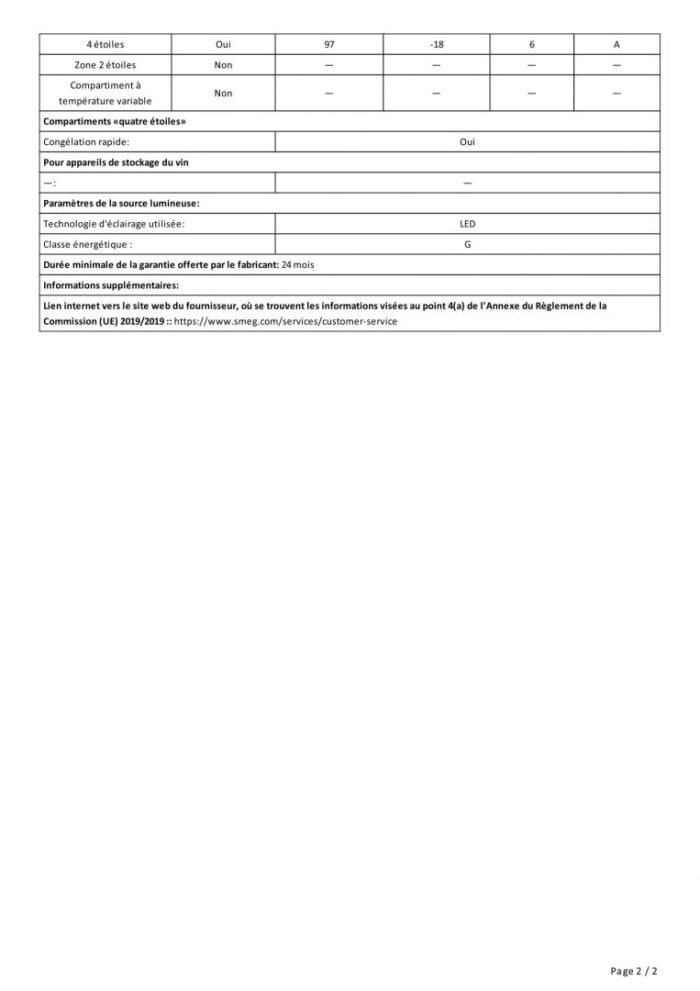 | Réfrig. rapide ou Super Réfrigération | Oui |